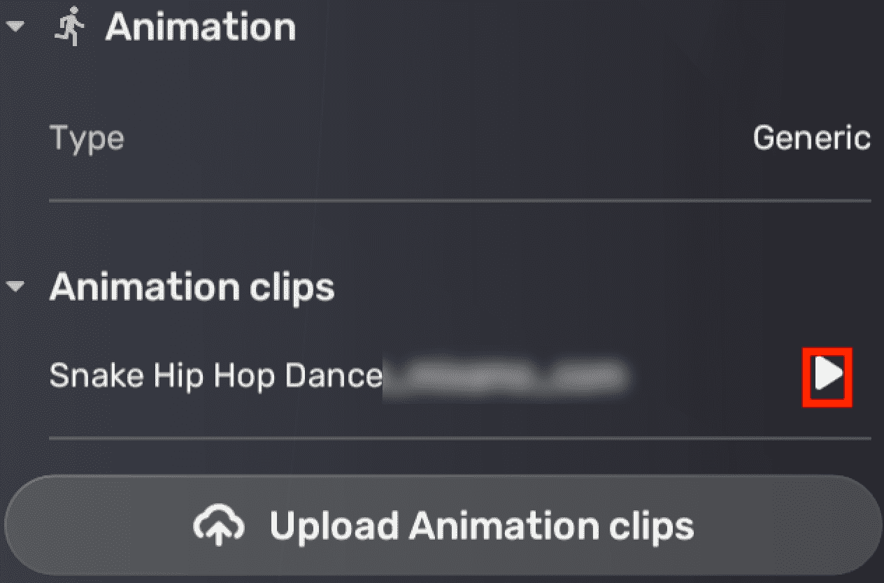 可选:如果模型包含动画,属性窗口中将会显示一个包含导入动画信息的动画面板。请检查动画预览效果。