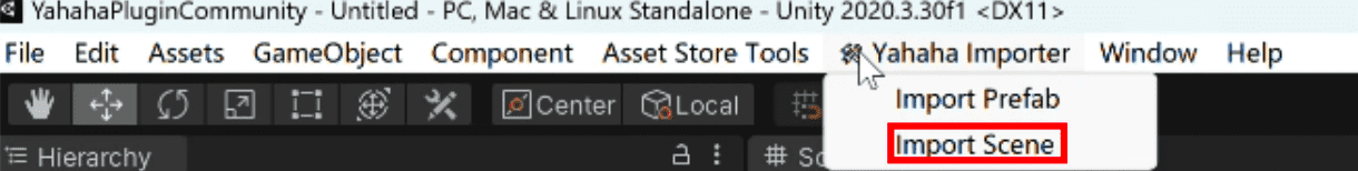 在顶部菜单选择 Yahaha Plugin > Import scene 打开 Yahaha 资产导入器。